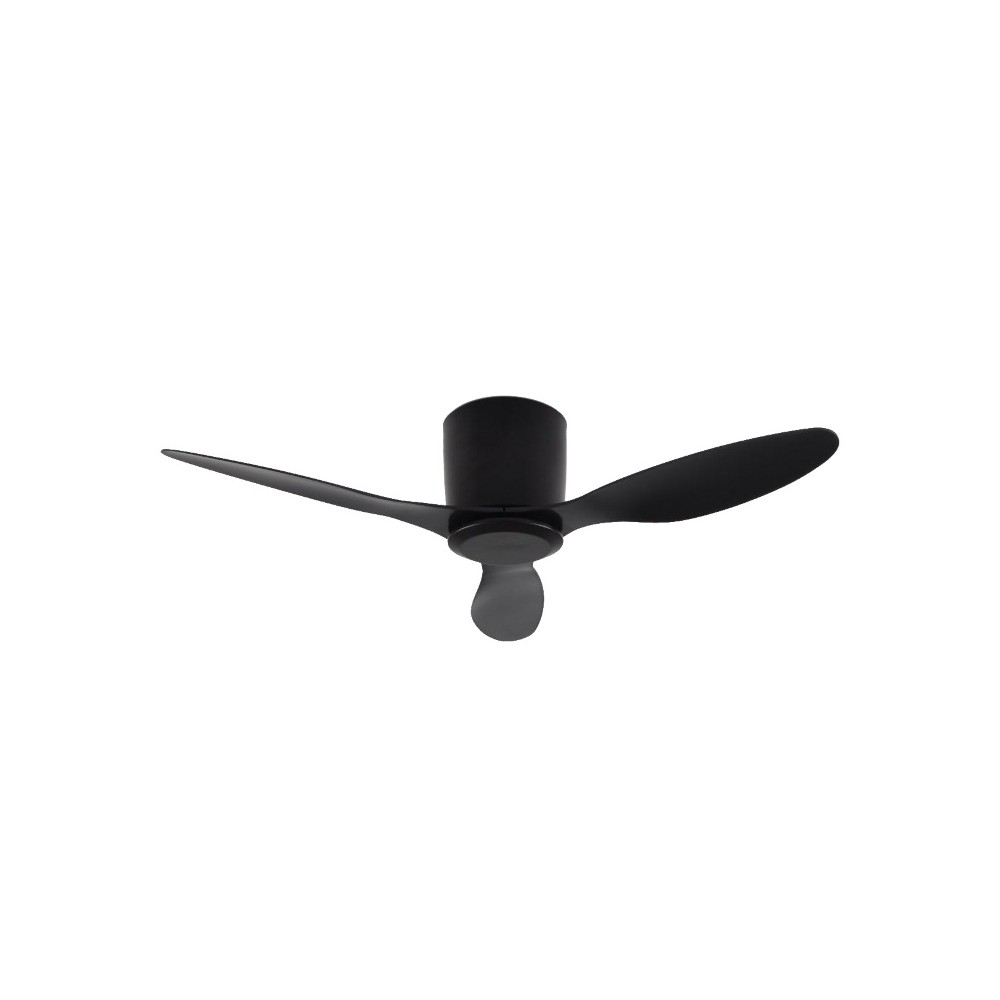 Ultra plat : Même avec un plafond bas à 2m50 vous resterez au dessus de la barre des 2m30 sous pales. La norme NF EN CEI 60335-2-80 préconise une hauteur entre sol et pales min. de 2,30m.